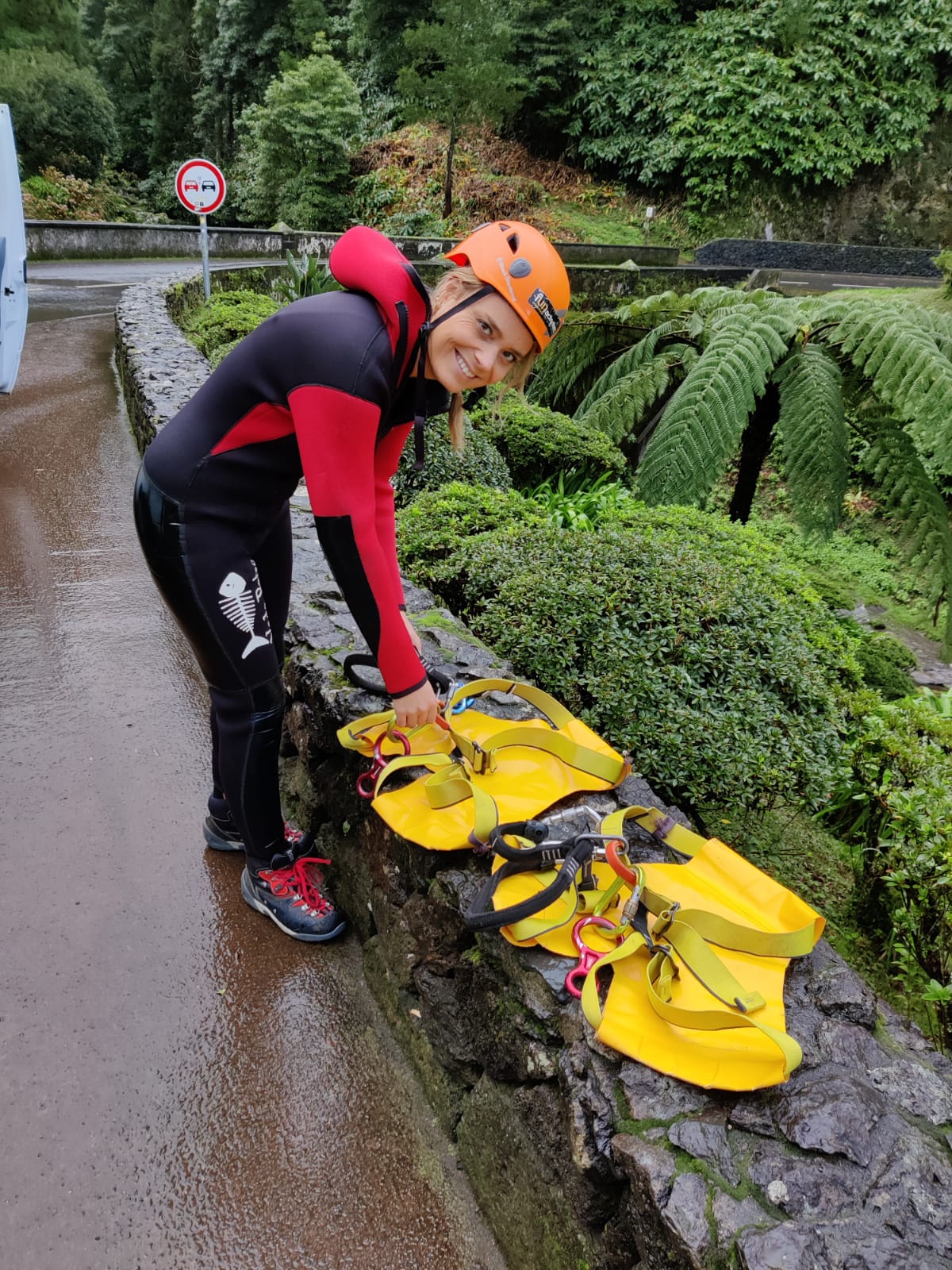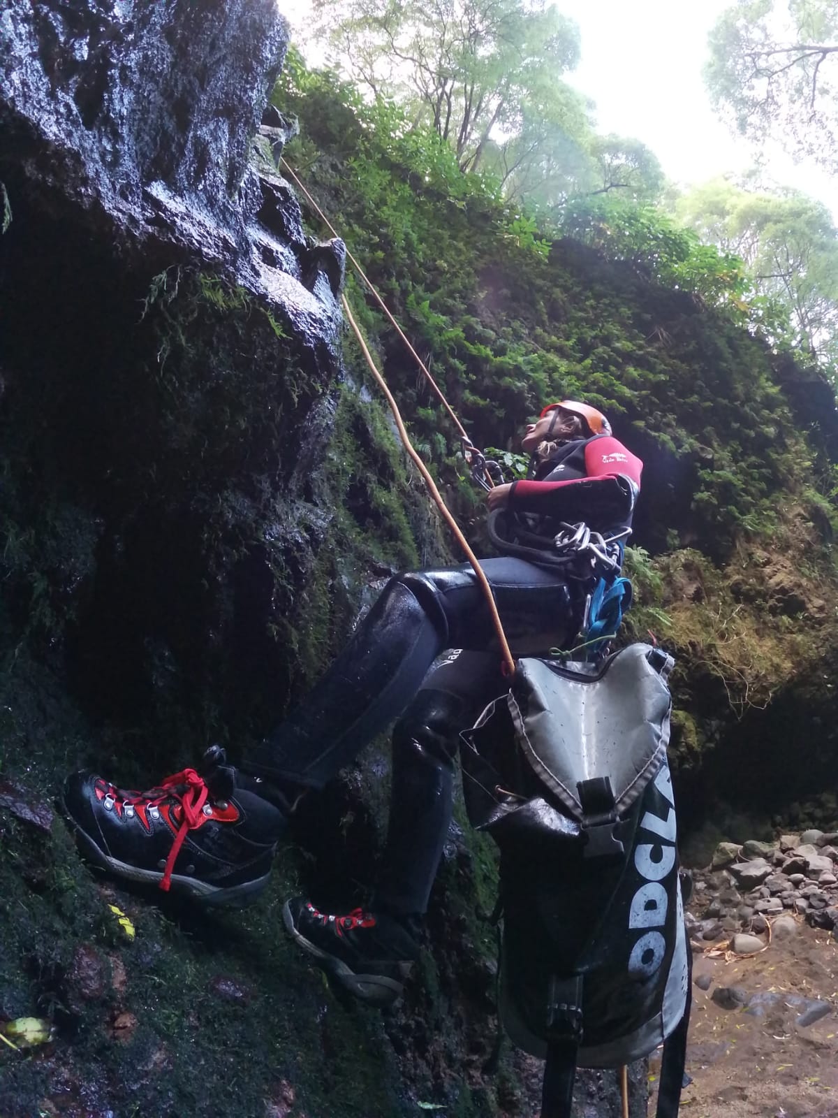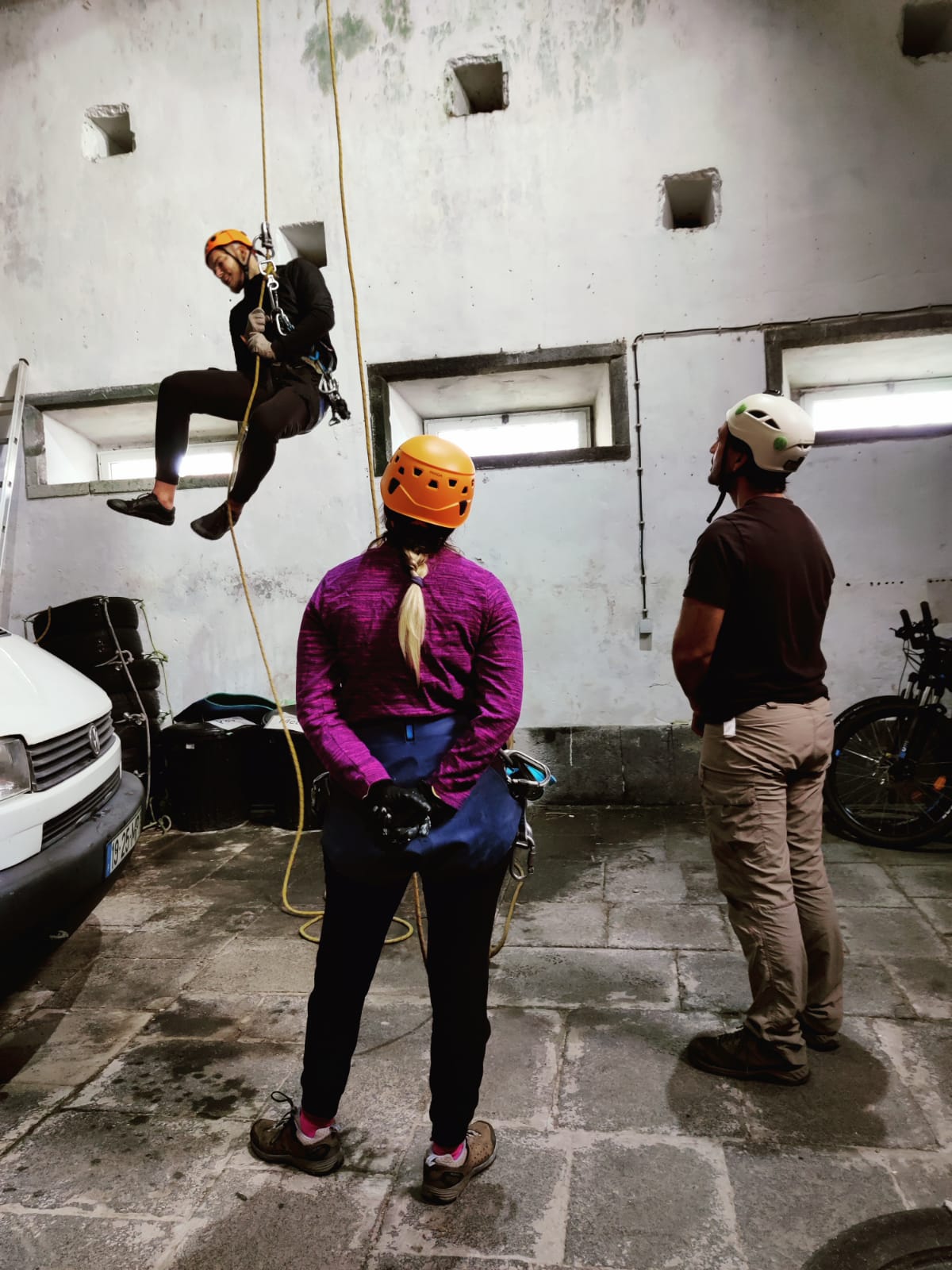 O Paulo fez um excelente trabalho ao nos ensinar sobre Canyoning; Como montar âncoras, subir e descer de cordas suspensas, como funciona o equipamento, como evitar erros, como trabalhar com segurança, formas de usar uma corda etc. Sob a sua supervisão e orientação, praticamos essas técnicas no armazém e depois de ganhar alguma confiança, também tivemos sessões de treino de lá fora. Tudo isso será certamente útil no nosso futuro.